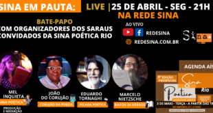 25/10 – SEXTA – 20h | 19ª SINA POÉTICA E PREMIAÇÃO DOS VENCEDORES DO PRÊMIO REDE SINA DE POESIA