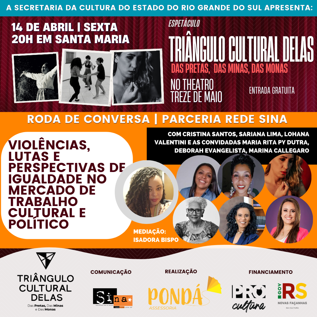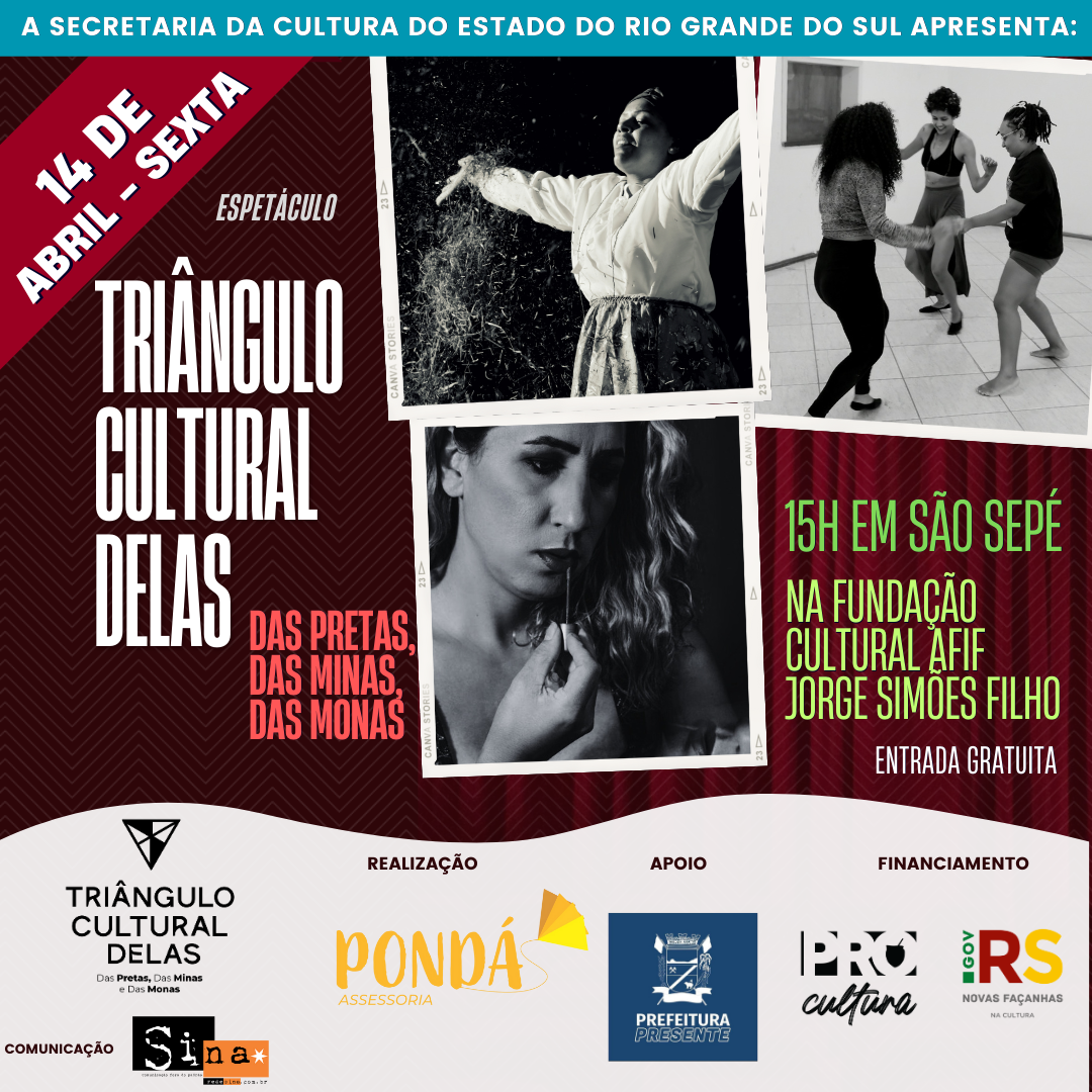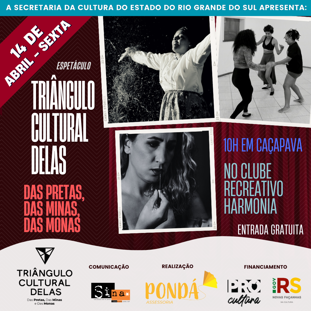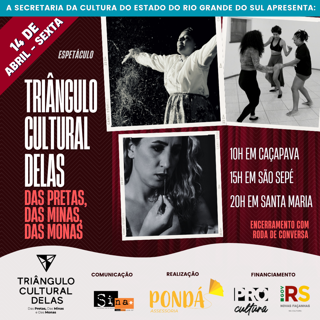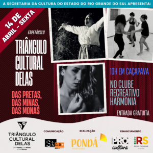 Reunindo artistas de Santa Maria, Santiago e São Sepé o espetáculo “Triângulo Cultural Delas: das pretas, das minas e das monas”, com produção de Isadora Bispo da Pondá Assessoria, busca dar visibilidade a produções comunitárias e traz histórias de lutas das mulheres.