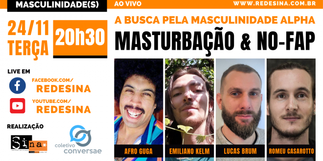 24/11 – terça – 20h30 Masculinidade(s) Apresentado por: Afro Guga, Emiliano Kelm, Lucas Motta Brum, Romeu Casarotto Próximos programas em: 08/12, 22/12 Live em: www.facebook.com/redesina www.youtube.com/redesina www.redesina.com.br Originalmente o movimento Nofap surgiu como uma rede de apoio mútuo para homens que, passando pelo processo de deixar de consumir pornografia, se …