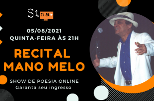“Mano Melo é a tradição vida poesia. Poeta-show!” – Pedro Bial RECITAL MANO MELO 05 DE AGOSTO – QUINTA – 21H DURAÇÃO: 50 MIN INGRESSO: R$22,50 COMPRE AQUI Link de acesso ao show (somente com ingresso / enviado por email): A Rede Sina tem a honra de promover o primeiro recital …