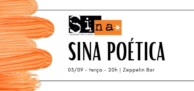 (atualização 07/10/19) A quinta edição da Sina Poética teve performance dos atores Arthur Mastroiano e Vanessa Bressa, exposição de obras do Daniel Signor, fotografias do Dartanhan Balbez Figueiredo, participação do poeta e ator Arcolau Bender, leitura da poesia premiada no concurso Felippe de Oliveira lida pelo próprio autor Odemir Tex …