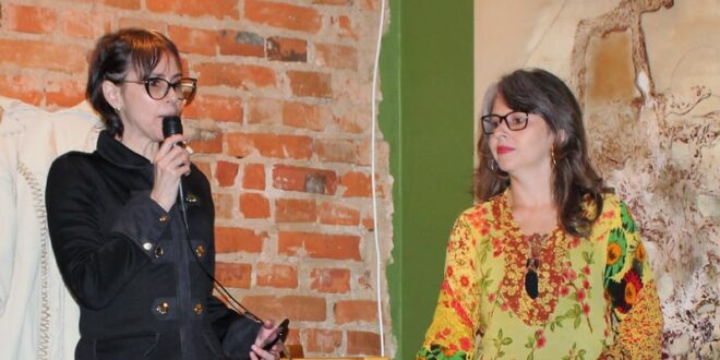 Melina Guterres (a direita) Susane Kochhann (a esquerda) durante a 7ª Sina Poética no Old School Pub. Parcerias em propostas criativas desde 2018.