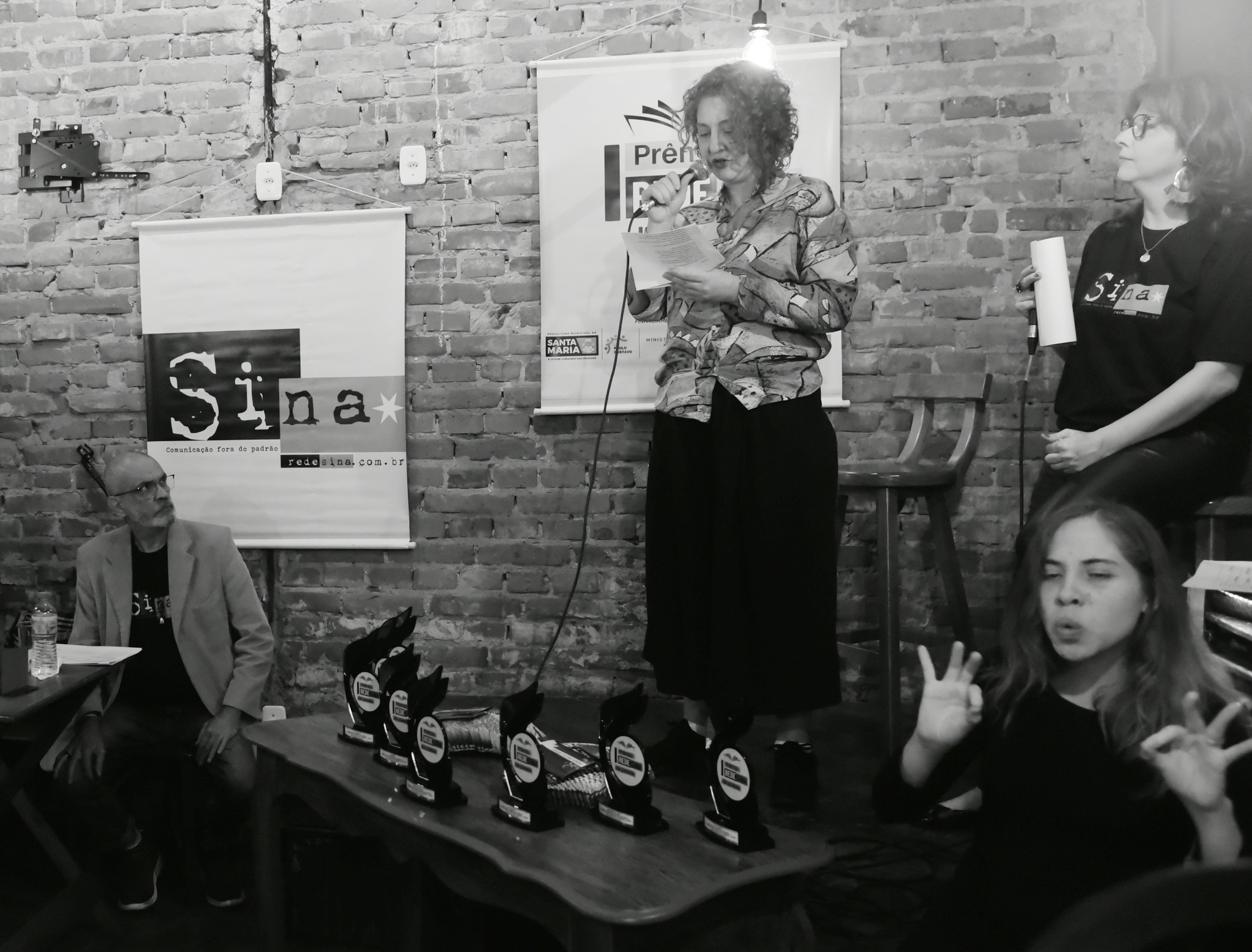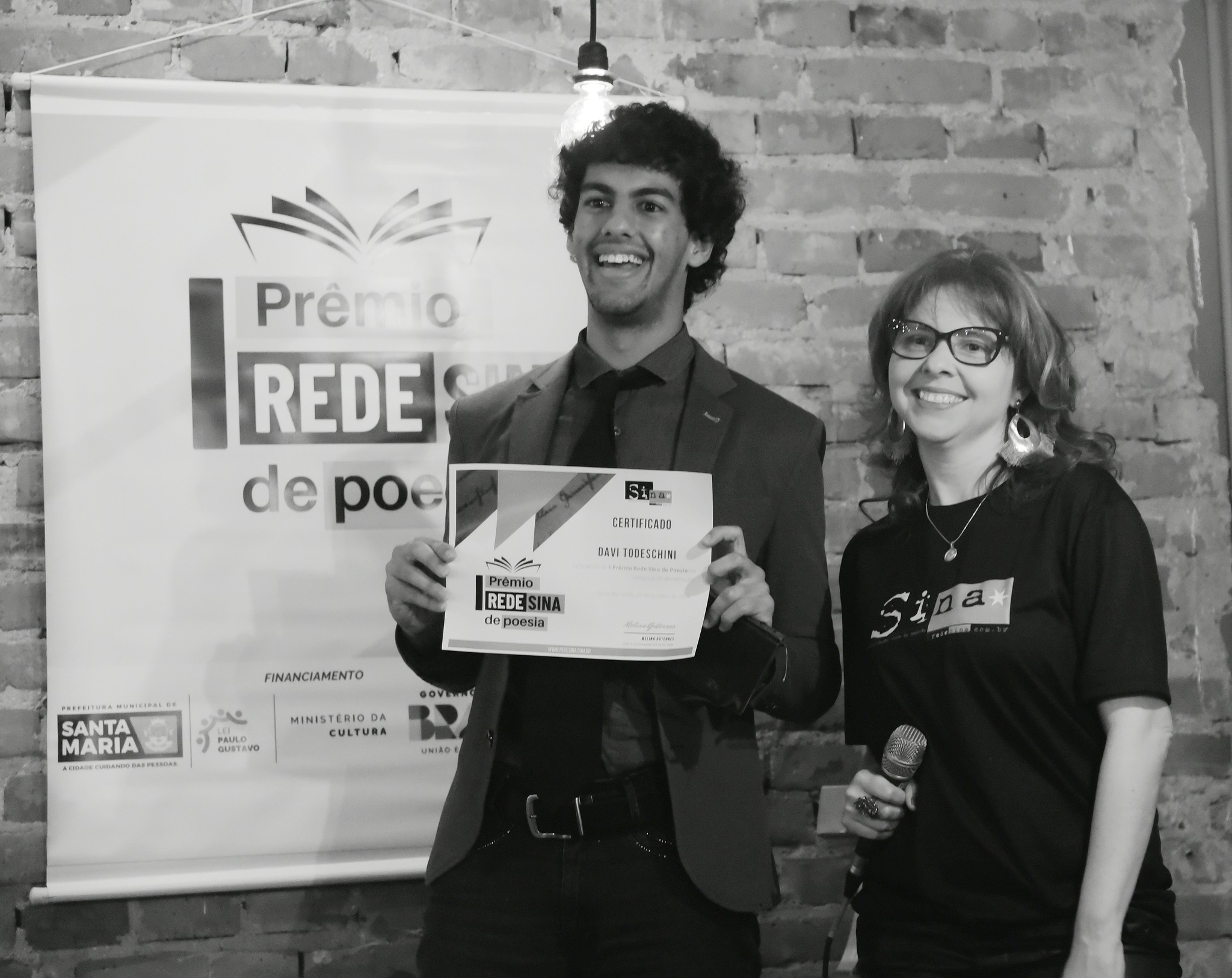 O I Prêmio Rede Sina de Poesia, projeto aprovado na Lei Paulo Gustavo do Município de Santa Maria-RS, teve como objetivo dar visibilidade aos autores e artistas locais, dividindo-se em duas categorias: Poema autoral e Declamação (poesia falada). Puderam participar autores nascidos ou residentes na/da região central do Rio Grande do Sul. Além da avaliação do júri técnico, o público (júri popular) pôde escolher seus preferidos.