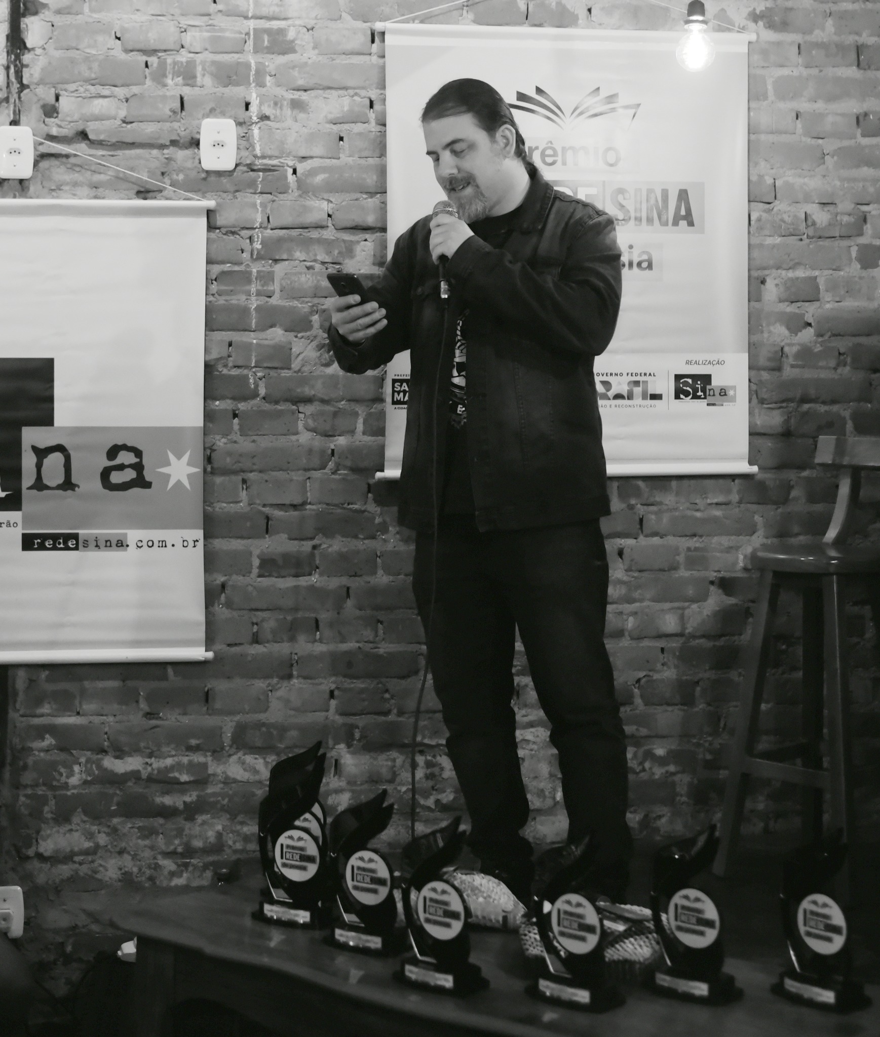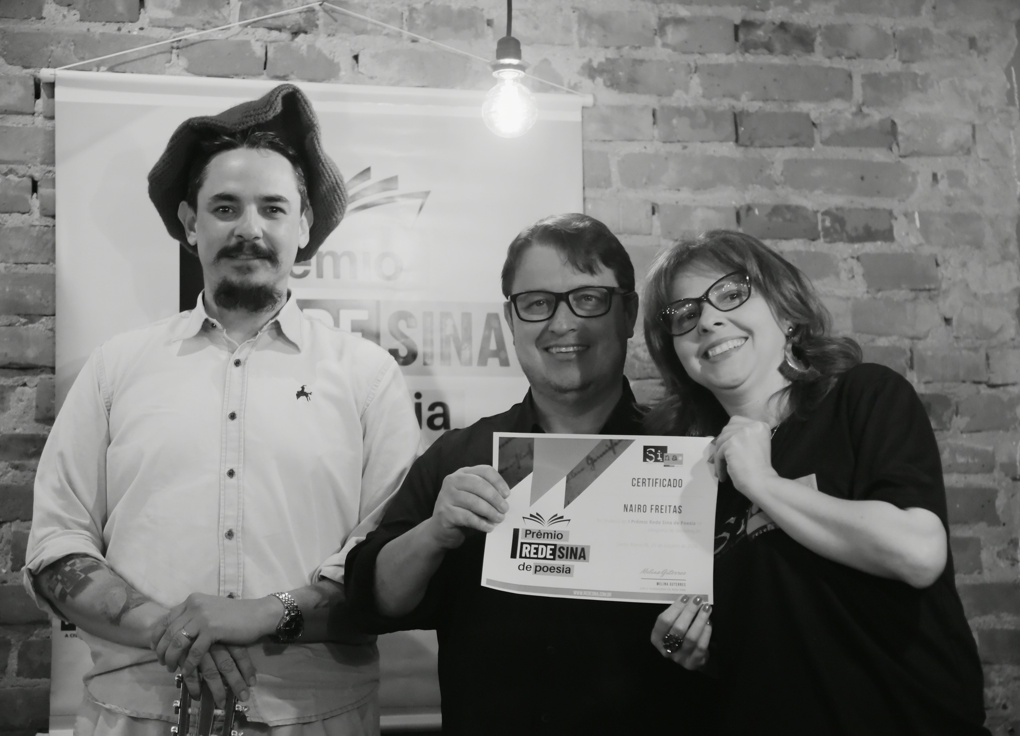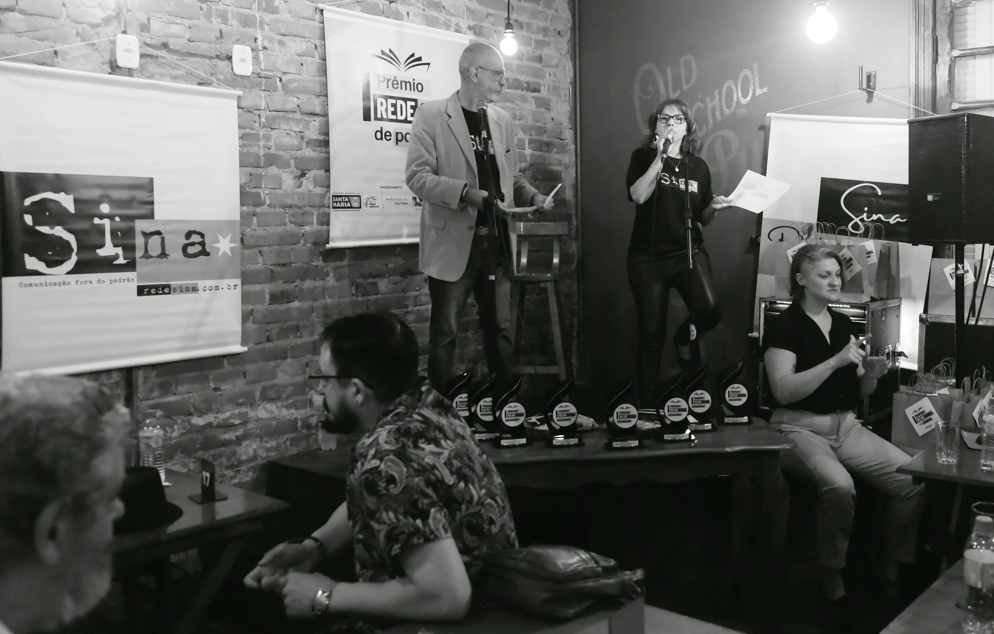 Os vencedores do I Prêmio Rede Sina de Poesia foram conhecidos, na última sexta-feira, 25 de outubro, no Old School Pub, durante a 19ª edição do Sarau de Poesia Sina Poética. São duas categorias do Prêmio: Poema Autoral e Declamação (poesia falada) e três vencedores em cada categoria. Os prêmios em dinheiro, são de R$ 1500,00 para o primeiro lugar em Poema Autoral e R$1000,00 para Declamação. Já o segundo lugar é R$ 500,00 e o terceiro lugar recebe R$ 250,00 em cada categoria. Também serão conhecidos os vencedores mais votados pelo Júri Popular, que recebem voucher de produtos para consumo no bar, além de um kit de cervejas da Mata Leão, um cheque-presente de R$ 150,00 da Livraria Athena e uma obra do artista Kalu Flores.