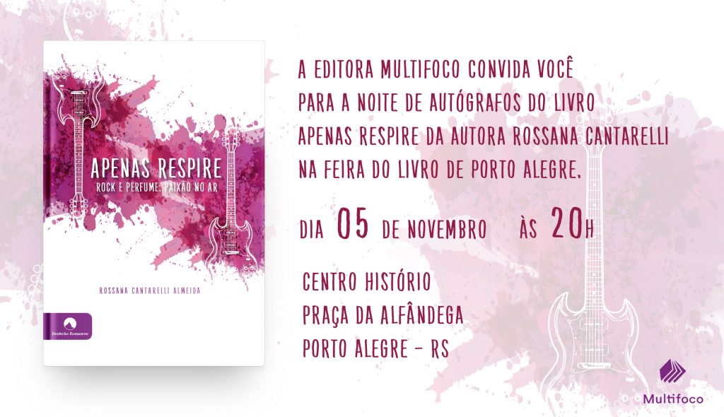 E foi então que Rossana começou a escrever. Sua história foi tomando forma; personagens, diálogos, dramas iam surgindo na sua mente. Até que nasceu “Apenas Respire – Rock e perfume: paixão no ar”, seu primeiro romance, publicado pela Editora Multifoco e lançado em junho de 2016. Já tem outros dois livros escritos, à espera de publicação.