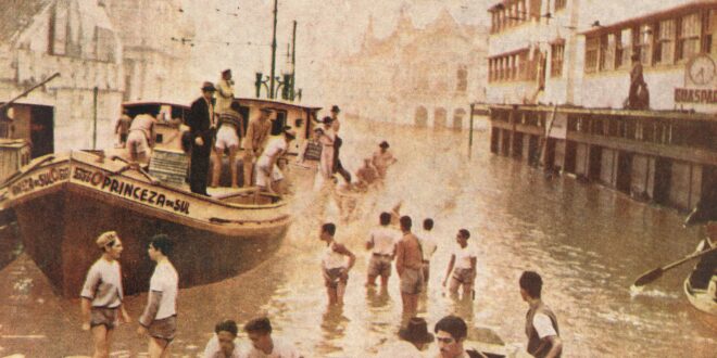 Era outra época, as cidades eram menores e, portanto, os prejuízos também. Mesmo assim, essa se manteve como a pior enchente do Rio Grande do Sul ao longo de décadas, muito em função de ter avançado Porto Alegre adentro, inundando as ruas do Centro da capital. Ainda não sabemos se a enchente de maio de 2024, que está acontecendo nesse exato momento, renderá imagens tão fortes e marcantes, da capital do Estado tomada por águas e barcos, como ocorreu na primeira metade do século passado. Mas, infelizmente, nesse momento já sabemos que o recorde de 1941 foi batido, com folga, pelas águas contemporâneas.