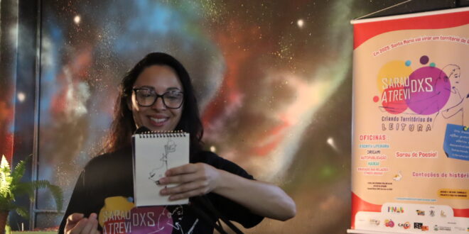 As atividades fazem parte do projeto “Sarau dxs Atrevidxs – Criando Territórios de Leitura”, realizado com apoio do edital Cultura Viva da Prefeitura Municipal de Santa Maria/RS, com recursos da Política Nacional Aldir Blanc, do Governo Federal. A programação prevê seis meses de ocupação cultural no Ateliê da Gare, com ações mensais em diferentes territórios da cidade.