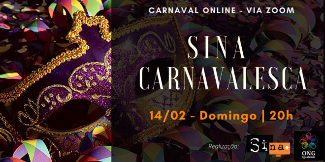 Neste domingo (14), a partir das 20h, todos estão convidados para a Sina Carnavalesca Online via zoom.
