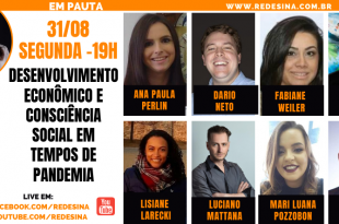 31/08 – Segunda-feira – 19h Em pauta: Desenvolvimento Econômico e Consciência Social em Tempos de Pandemia Apresentação: Mel Inquieta (Melina Guterres) Convidadas: Ana Paula Ferlin, Dario Neto, Fabiane Weiler, Irmã Lourdes. Lisiane Larecki, Luciano Mattana, Mari Luana Pozzobon, Pedro Saccol Transmissão em: www.facebook.com/redesina, www.youtube.com/redesina e nesta publicação Na segunda, 31, …