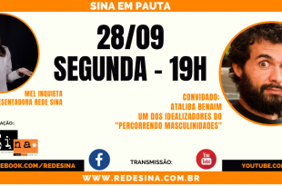 28/09 – Segunda-feira – 19h Em pauta: PERCORRENDO MASCULINIDADES Apresentação: Mel Inquieta (Melina Guterres) Convidado: Ataliba Benaim Live em: www.facebook.com/redesina www.youtube.com/redesina www.redesina.com.br Sina em Pauta: Programa de entrevista e debates sobre variados temas apresentado por Melina Guterres – Mel Inquieta, jornalista criadora da Rede Sina Convidado: Ataliba Benaim é gestalt-terapeuta pelo …