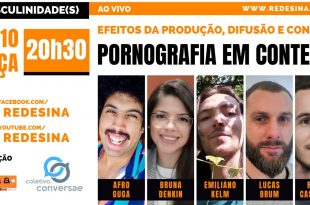 27/10 – terça – 20h30 Masculinidade(s) Apresentado por: Afro Guga, Emiliano Kelm, Lucas Motta Brum, Romeu Casarotto Convidada: Bruna Denkin Pornografia em contexto Próximos programas em: 10/11, 24/11, 08/12, 22/12 Live em: www.facebook.com/redesina www.youtube.com/redesina www.redesina.com.br Nessa terça conversaremos sobre os efeitos da produção, difusão e consumo de pornografia que, …