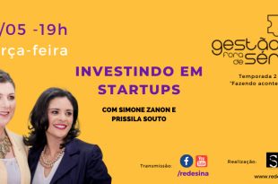 11/05 – Terça-feira – 19h Gestão Fora de Série – Investindo em Startups Apresentação: Prissila Souto e Simone Zanon Convidada: Lorena Tassara Transmissão em: www.facebook.com/redesina, www.youtube.com/redesina e nesta publicação. O mercado de startups está em crescimento! Mesmo com a pandemia, o sistema de inovações brasileiro caminha para margens de criação …